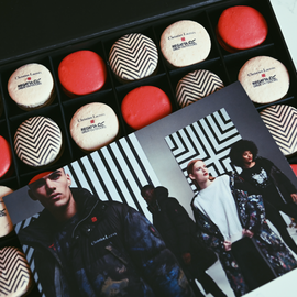 Whilst we're incredibly proud of our own Mademoiselle boxes these were wonderful to see. The same construction (with a magnetised close) and padding to ensure the macarons were safe in transit were reworked - into black, but with the bold Christian Lacroix x Regatta patterning and brief fitting the collaboration.