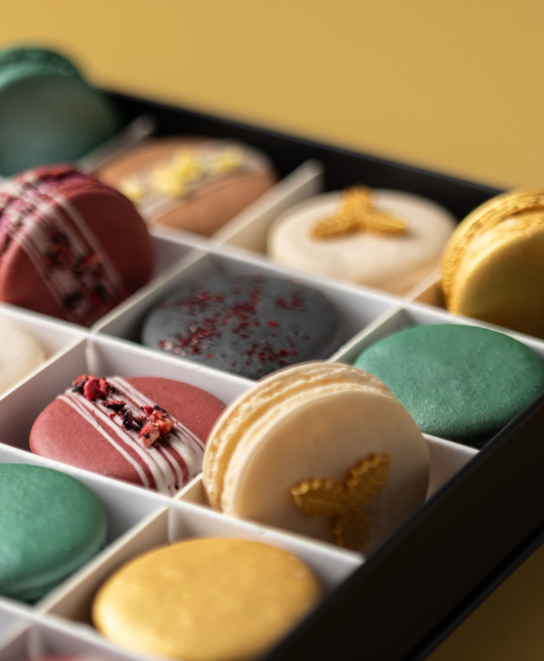 Instead of the usual chocolates or desserts, we’ve transformed traditional Christmas flavours into exquisite French macarons.