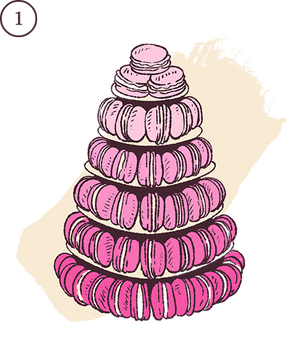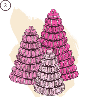 We offer a range of designs of macaron tower available in 5 sizes - featuring 85 macarons to 210 macarons. There's an option for all sizes of wedding.