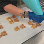 These shaped macarons sparkle in gold with vanilla filling and are surrounded by a colour palette of blue macarons filled with our classic delicious flavours.