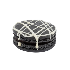 Toasted Marshmallow is only for those who dare... Our black macaron, hand-decorated with a delicate spider’s web, is filled with smoky toasted marshmallow and dark chocolate ganache. It’s giving you all the flavours of gathering ‘round a campfire, but with a touch of sophistication and no pesky mosquitoes.